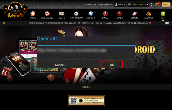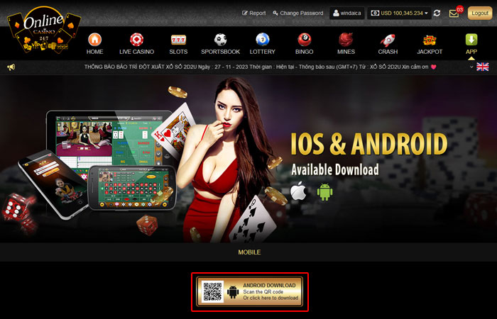 - Untuk men-download aplikasinya , cukup klik tombol Download , atau kunjungi https://android1.alt-api.com/LiveCasino.apk dengan perangkat ponsel Anda , atau scan QR code . pemain yang ada bisa login dengan detail akun yang ada